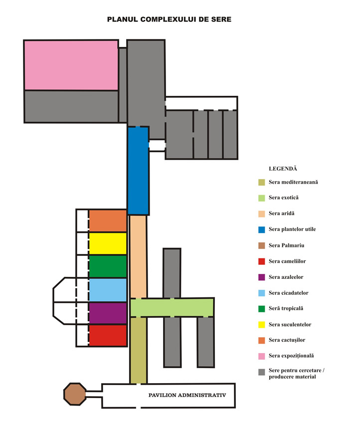 Complexul de Sere este situat în zona centrală a sectorului Ornamental, ocupă o suprafaţă de 5500 m² şi cuprinde 21 de compartimente. Dintre acestea, 8 sunt deschise permanent spre vizitare, iar alte 3 sunt accesibile vizitatorilor în anumite perioade din an, cu ocazia diferitelor evenimente expoziţionale.